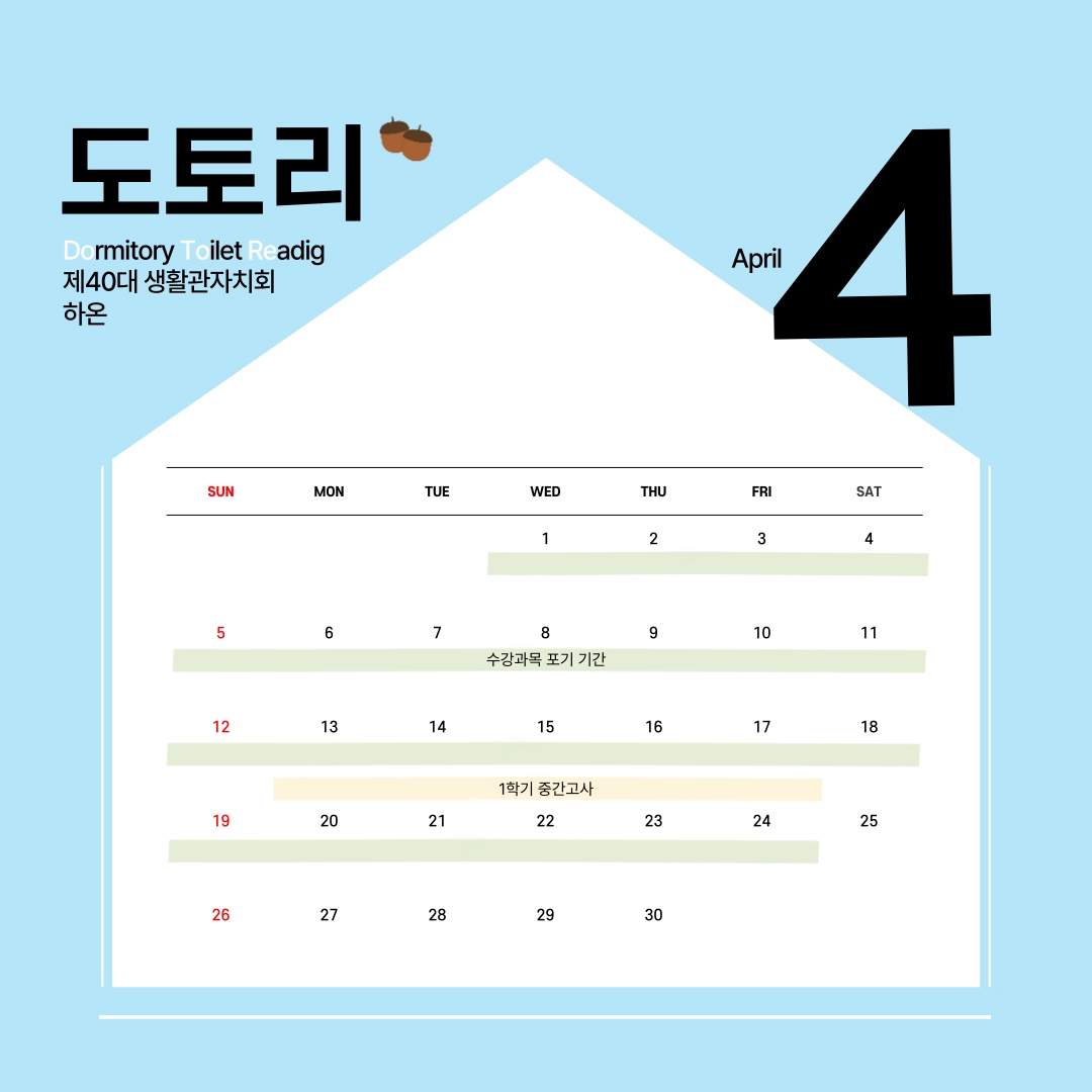 4월의 다양한 학교 소식들을 전해드리기 위해 도토리가 카드뉴스로 찾아왔습니다